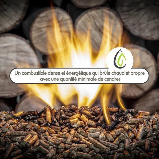 - Qualité supérieure : Des granulés compressés pour une combustion homogène et une chaleur optimale.
